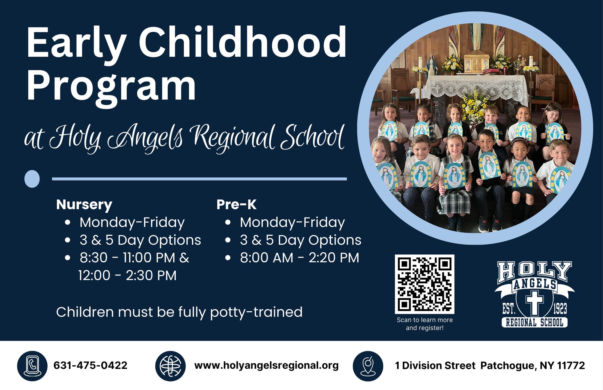 Holy Angels Regional School, founded in 1923 as St. Francis deSales Catholic School, was established as a regional school in January of 1977 as an opportunity for parents in eight neighboring parishes to provide an elementary education in an atmosphere of Christian concern and faith values. In the Diocese of Rockville Centre it was the second such regional school and, at present, is one of sixteen regional schools. It services seven parishes, namely Mary Immaculate in Bellport, St. Frances Cabrini in Coram, St. Joseph the Worker in East Patchogue, St. Sylvester in Medford, Our Lady of Mount Carmel in North Patchogue, St. Francis de Sales in Patchogue and St. Margaret of Scotland in Selden.